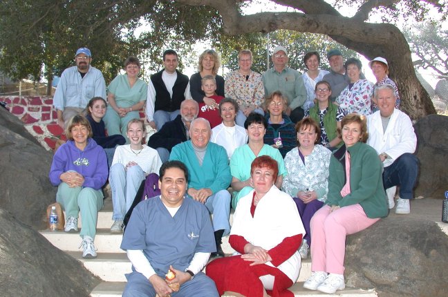The January 2004 Team had several people that came from Polson, MT. We had Dr. Mike Windauer, from Polson, Montana, Dr. Bob Windauer, Mike's dad, also from Montana and their hygienists, Dr. David "Poco Loco" Engst, from Bellevue, WA, Dr. Mike Roberts, Simi Valley, CA, Dr. Wayne Adamson, St George Utah, and two Mexican colleagues, Dr. Edna Gongora, from Guadalupe, BC. and Dr. Victor Añorve from Ensenada, BC. Chiropractor Dr. Kay Marine also joined the Team. The January 2004 Team photo is below: