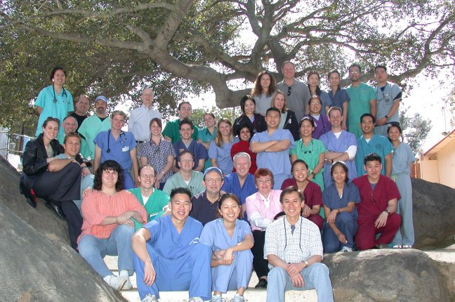 Pastor Jose Arechiga from Iglesia Cudrangular –Casa de Oracion brought several from his Hawaiian Gardens congregation to serve as interpreters for the dentists and physicians. Many of the Dental and Medical Students played with the children sharing their love with them. The March 2004 Team Photo is next below: